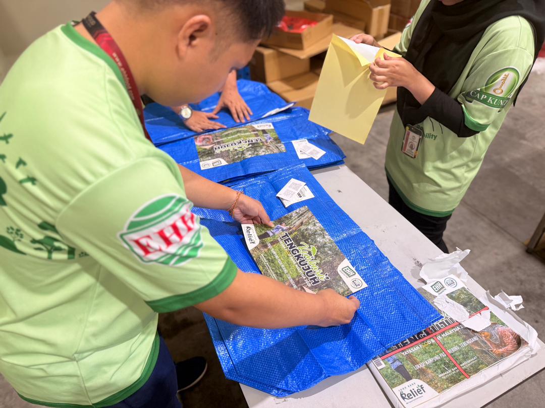 SESI PEMBUNGKUSAN BEG BANTUAN UNTUK PROGRAM KEMBARA TENGKUJUH SUMBANGAN EHH FOOD INDUSTRI SDN BHD