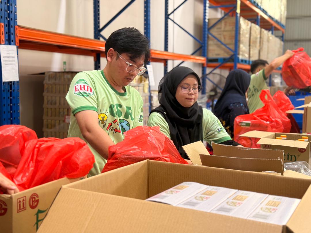 23 Disember 2025 – Telah berlangsung sesi pembungkusan di Pusat Pengedaran dan Pembungkusan Yayasan Food Bank Malaysia (YFBM). Pembungkusan beg bantuan telah dilaksanakan dengan jayanya hasil kolaborasi erat bersama pasukan sukarelawan dari EHH Food Industri.