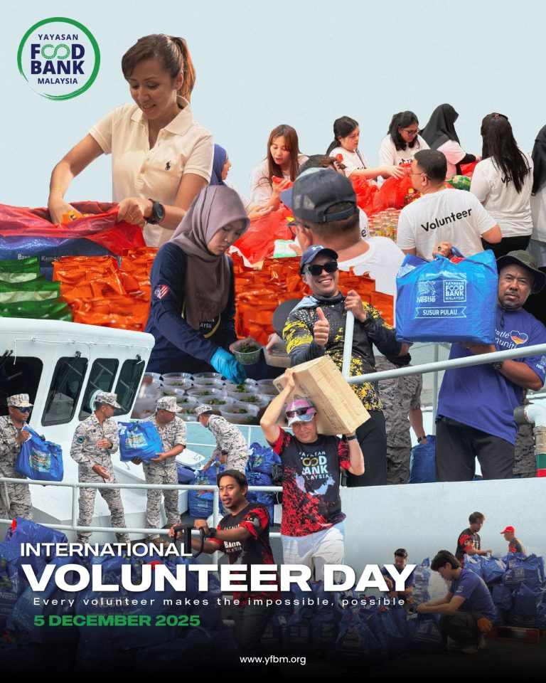 INTERNATIONAL VOLUNTEER DAY 2025 Today, we celebrate our incredible YFBM volunteer family. At Yayasan Food Bank Malaysia, every mission, every food box, every rescued item of