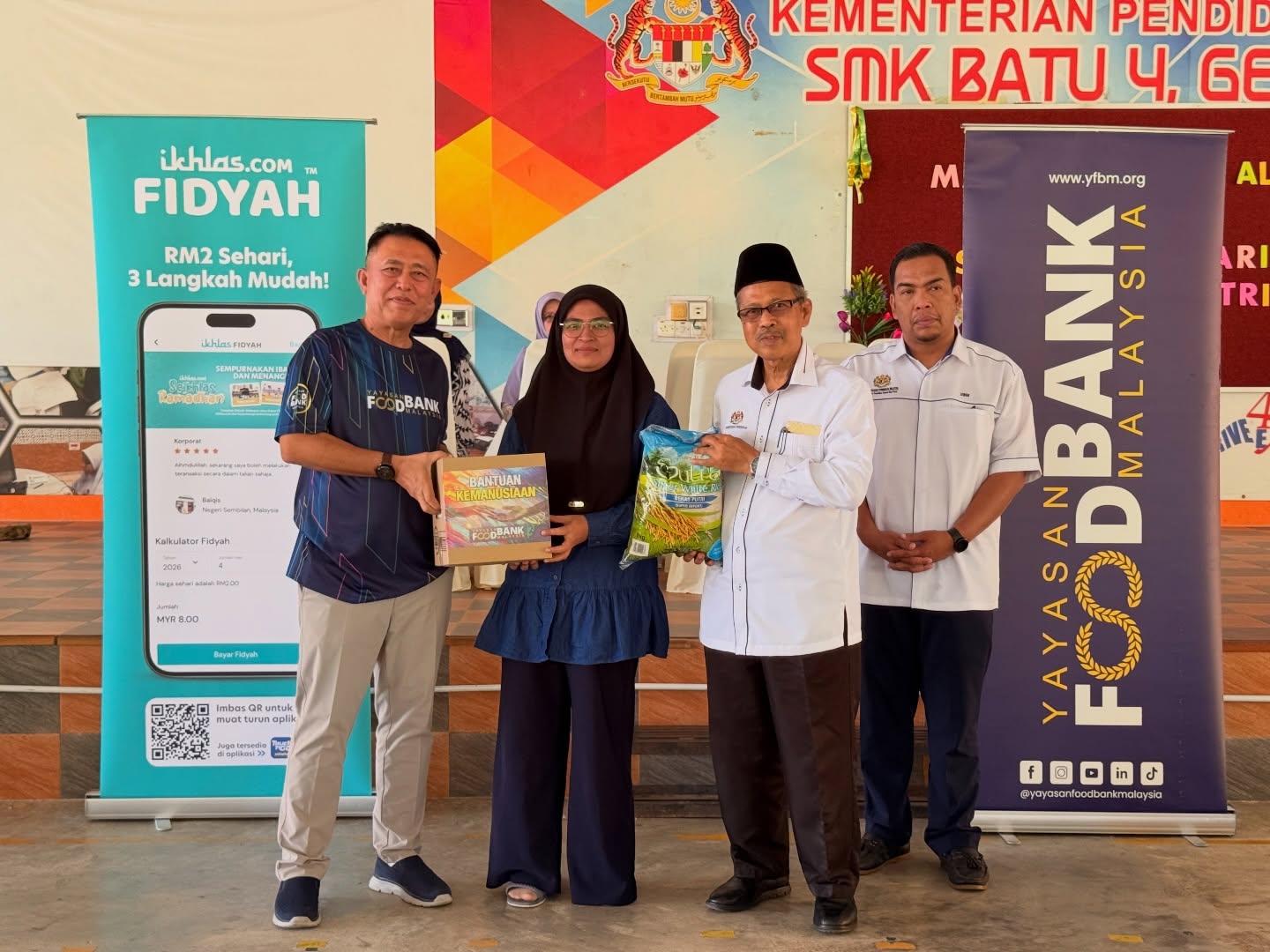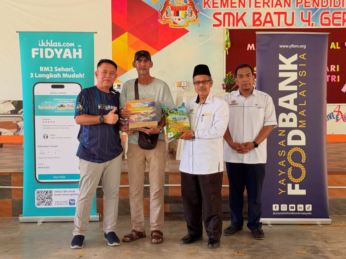 16 Mac 2026 – Yayasan Food Bank Malaysia (YFBM) telah melaksanakan program agihan Kotak Makanan Food Bank Kasih YFBM bersama Beras Fidyah sumbangan ikhlas.com kepada komuniti yang memerlukan di SMK Batu 4, Gerik.