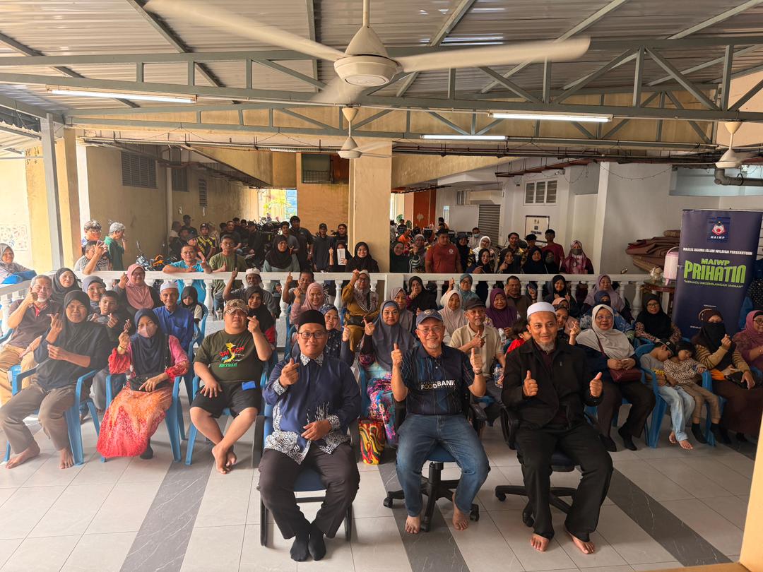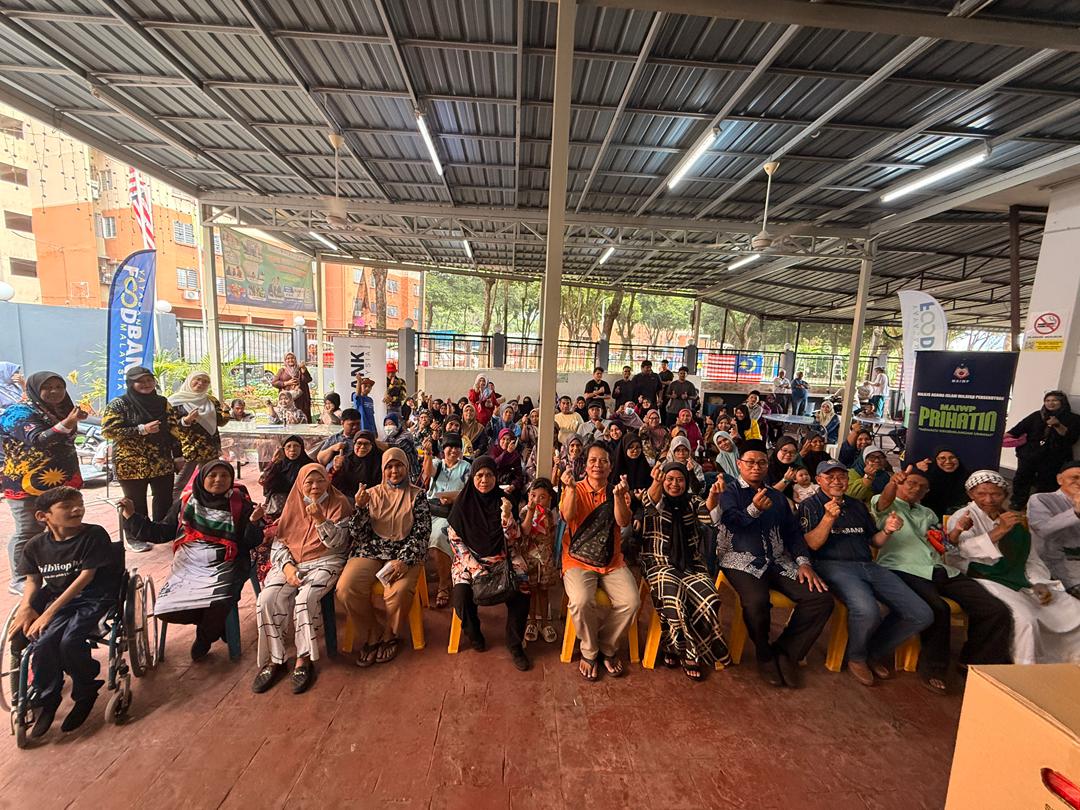 15 November 2025 — Program Bakul Makanan MAIWP Prihatin diteruskan dengan kerjasama Yayasan Food Bank Malaysia (YFBM). Sebagai lokasi penutup bagi keseluruhan program MAIWP Prihatin Komuniti Sejahtera 2025, agihan bantuan pada kali ini tertumpu di Surau Al-Muttaqin, PPR Pekan Kepong melibatkan 100 penerima, serta di Surau Jumaat Al-Hijrah, PPR Intan Baiduri yang turut menerima 100 penerima bantuan.