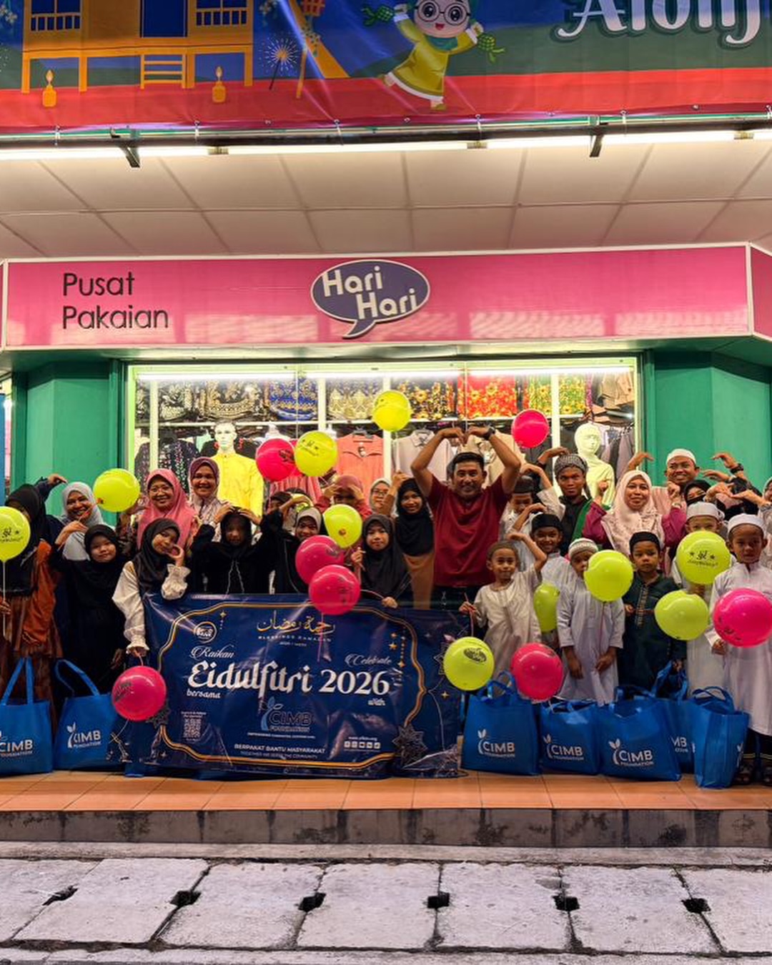 6 Mac 2026 – Yayasan Food Bank Malaysia (YFBM) bersama CIMB Foundation telah menyantuni seramai 20 orang anak-anak dari Pondok Mahfuzah untuk sesi membeli-belah pakaian Raya sebagai persiapan menyambut Aidilfitri tidak lama lagi. Program ini dapat dilaksanakan melalui tajaan dan sumbangan daripada pihak CIMB Foundation.