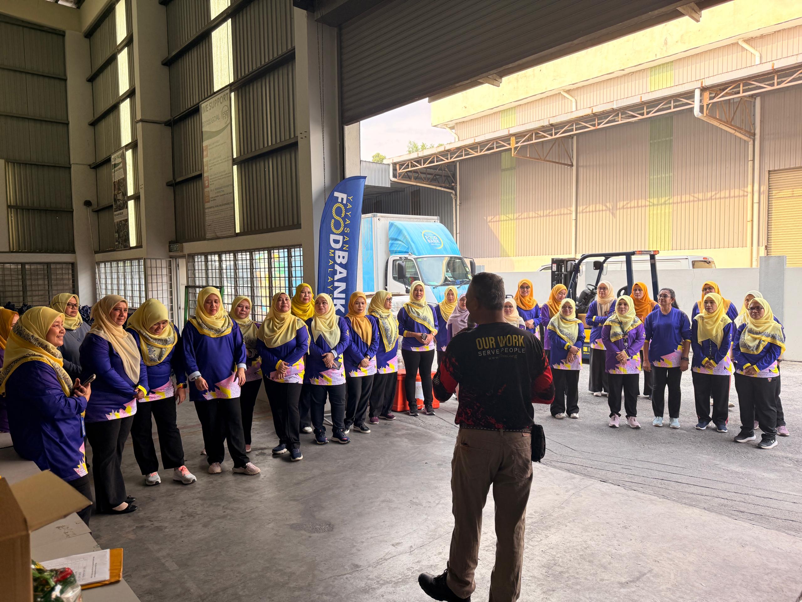 Turut hadir pada hari ini ialah, Y.A.M. Tengku Datin Paduka Setia Zatashah Binti Sultan Sharafuddin Idris Shah, Pengerusi Ahli Lembaga Pemegang Amanah Yayasan Food Bank Malaysia, YBhg. Datin Hajah Murni binti Muda, Pengerusi PUSPANITA Cawangan KPM, Encik Johan bin Halid, Ketua Pegawai Eksekutif Yayasan Food Bank Malaysia, bersama sukarelawan PUSPANITA KPM dan warga kerja YFBM.